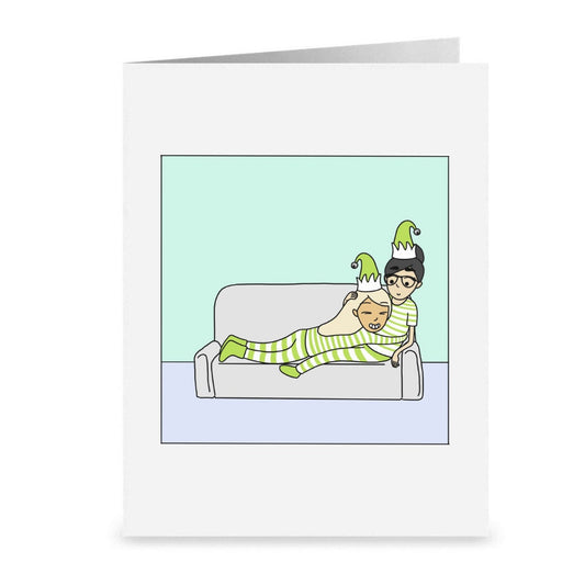 You Bring Out My Best Elf, Romantic Lesbian Christmas, Cute LGBTQ Holiday Gift, WLW Cuddling Sapphic Xmas Greeting Card, Punny Lesbian card