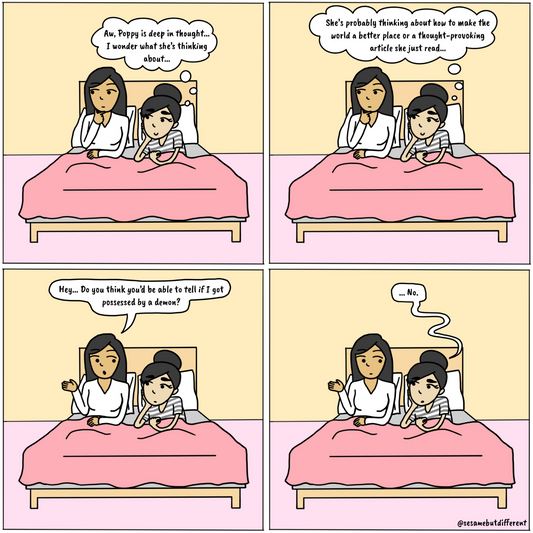 Poppy's Deep Thoughts | Cute Lesbian Relationship Gifts | Lesbian LGBTQ Comic Print (10" x 10") | Full Color | Sesame But Different