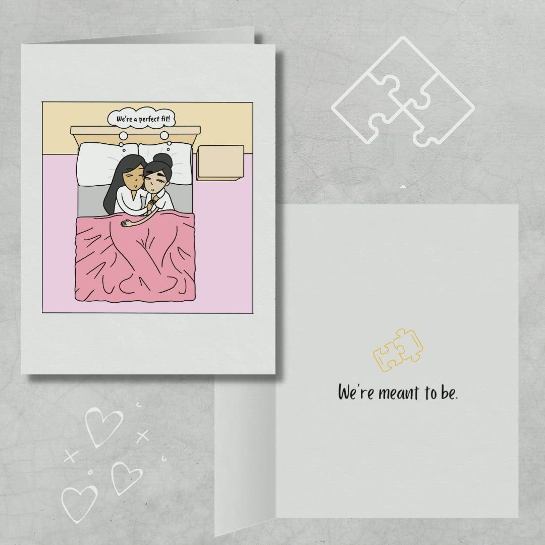 We're Meant to Be | Perfect Fit Lesbian Greeting Card | LGBTQ Cards & Gifts