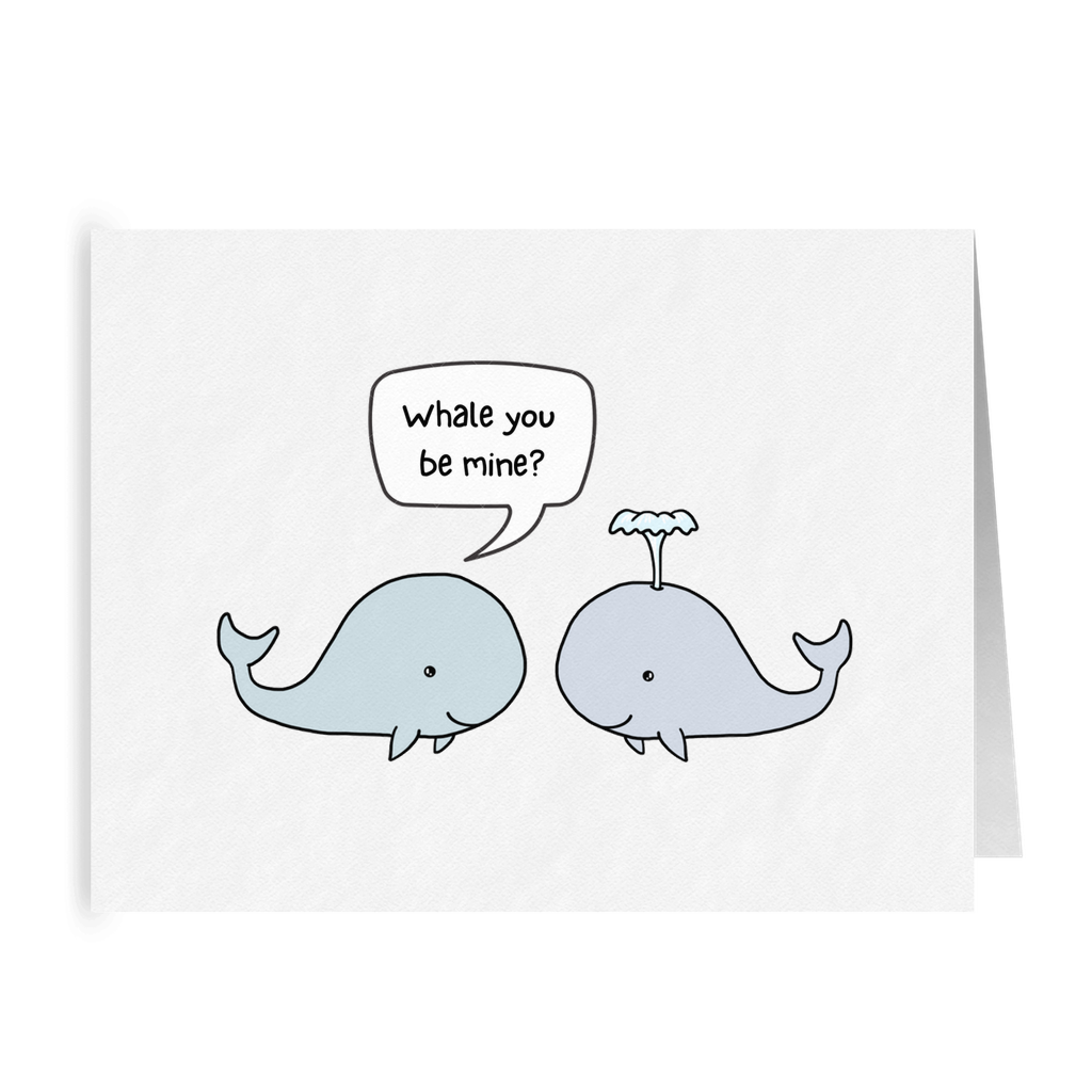 Looking for a cute gift for your girlfriend this Valentine's Day? Get this punny whale greeting card to ask them if they will be your Valentine.