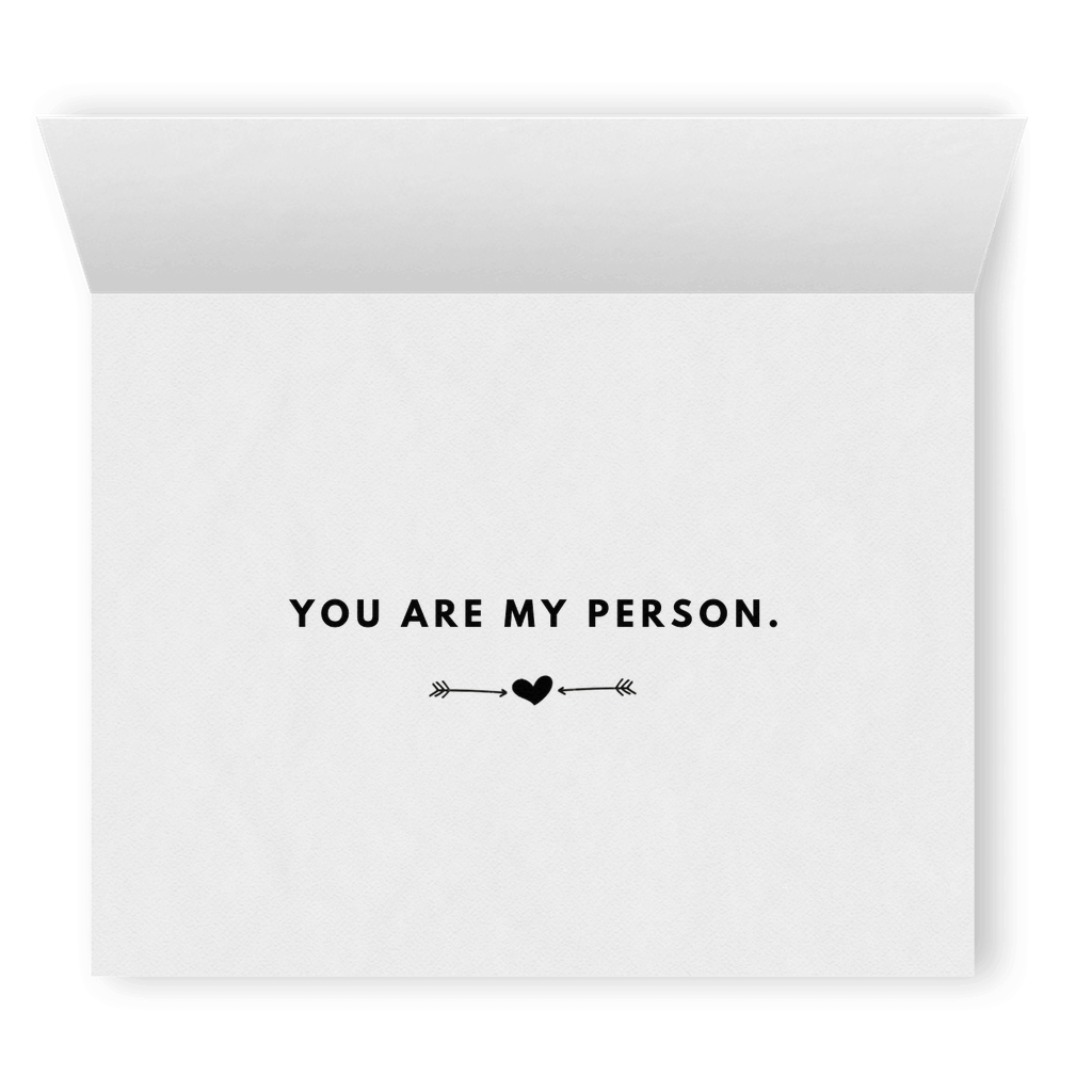 Do you have someone in your life who will always be your person no matter what? This is a cute greeting card for that person in your life. Get this for your girlfriend, wife, or partner to celebrate an anniversary, birthday, or special occasion.